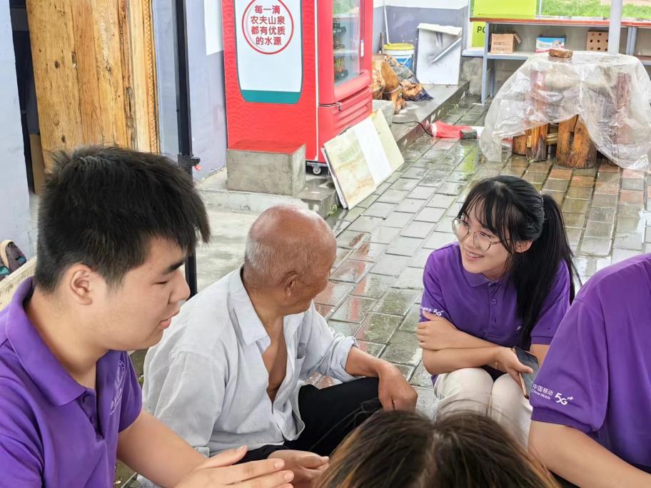 實(shí)踐隊(duì)隊(duì)員拜訪了當(dāng)?shù)氐囊恍┐迕瘢彤?dāng)?shù)丨h(huán)境、基礎(chǔ)設(shè)施建設(shè)、村民生活水平變化以及產(chǎn)業(yè)就業(yè)等多個方面進(jìn)行了訪談、深入交流。當(dāng)?shù)卮迕裣驅(qū)嵺`隊(duì)隊(duì)員透漏,自從蔡家坡村由“貧困村”轉(zhuǎn)變?yōu)?ldquo;藝術(shù)村”,成為一處網(wǎng)紅打卡地,不僅為當(dāng)?shù)貛砹朔浅8叩娜藲猓尨迕竦纳钏接辛司薮筇岣撸司杖敕藥追瑸閷?shí)現(xiàn)共同富裕賦能,同時還使村民們的精神文化生活更加豐富,從過往的“啥叫藝術(shù)”轉(zhuǎn)變?yōu)楝F(xiàn)在的“做飯也是一種藝術(shù)”,展現(xiàn)出了村民們積極向上、熱愛生活的精神風(fēng)貌。
