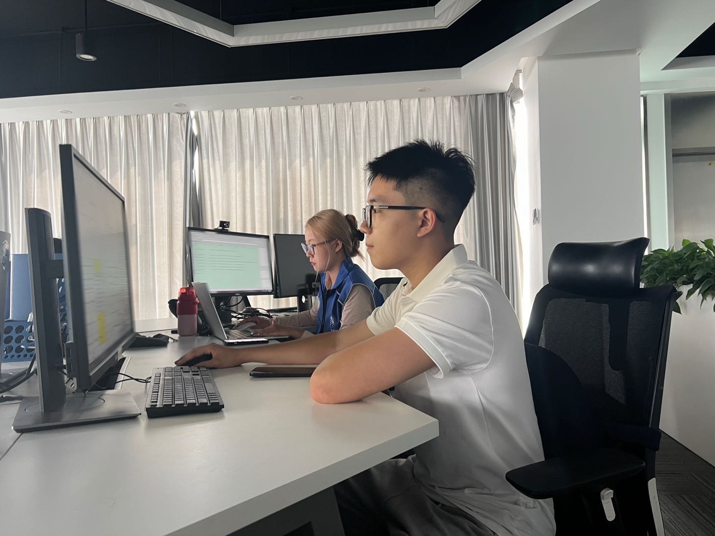 (圖為團(tuán)隊(duì)成員在反詐中心聽(tīng)警官講解工作。中國(guó)青年網(wǎng)通訊員 石昊原 供圖)