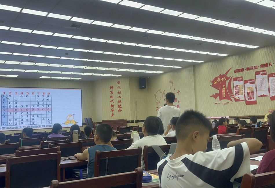 2024年7月22日下午,山東大學(xué)學(xué)生春暉社“手星陽(yáng)光”支教隊(duì)成員姜俁樂(lè)在中共王舍人鎮(zhèn)曲家村支部委員會(huì)進(jìn)行第二次小學(xué)組數(shù)獨(dú)教學(xué)課程的學(xué)習(xí)。