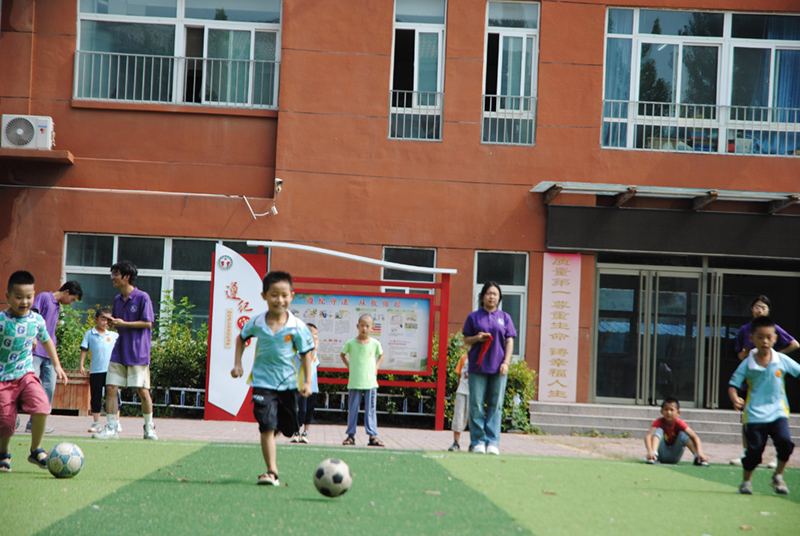 足球場上,孩子們帶球奔跑、揮灑汗水。孩子們像一群小麻雀一樣嘻嘻哈哈地奔跑著,足球在他們的腳下快速滾動,偶爾傳來一聲調(diào)皮的笑聲和輕快的腳步聲。他們在陽光下奔跑,留下了一段段美好的童年回憶。