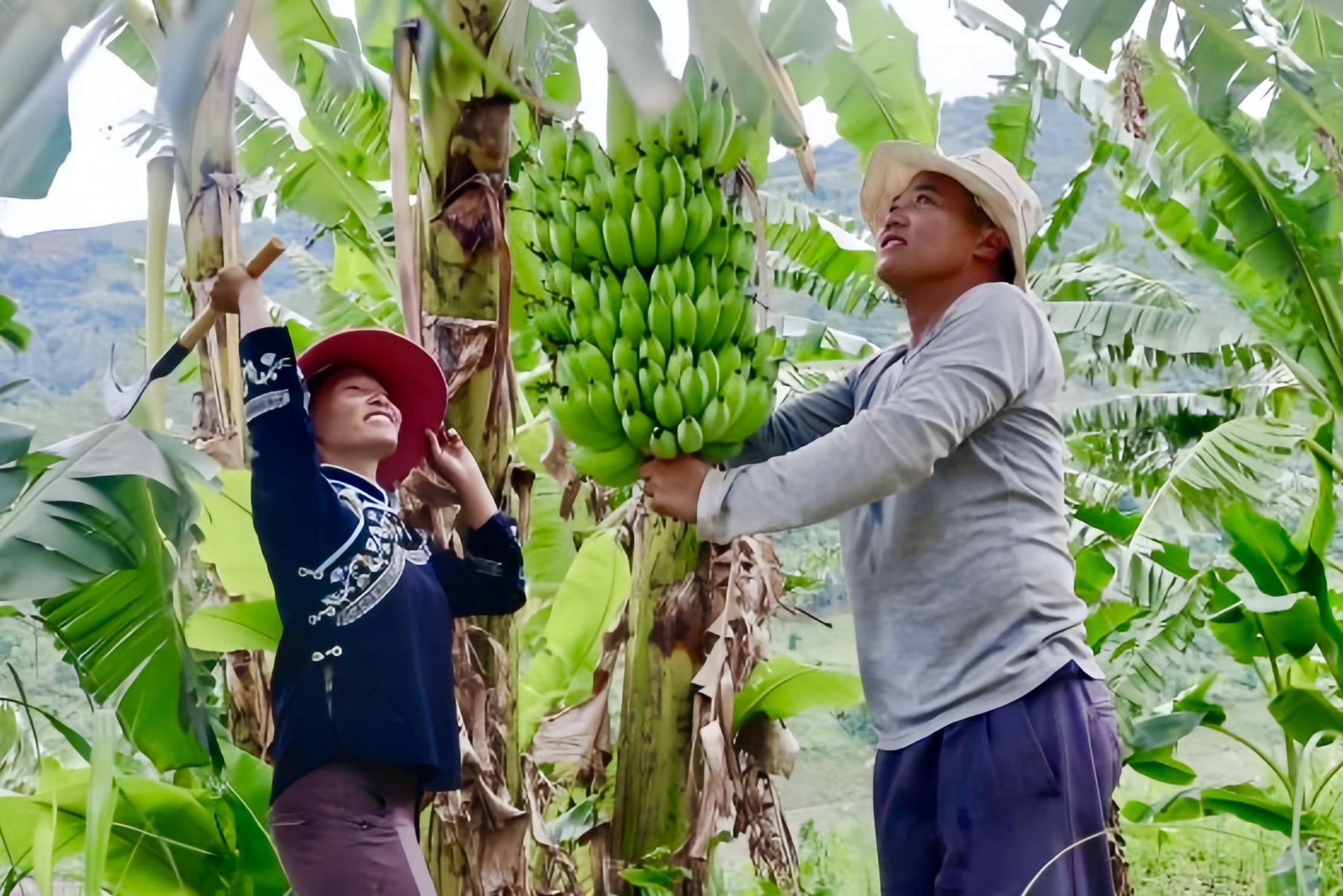 (圖為布依族糯米蕉種植戶采摘糯米蕉現(xiàn)場 游思余攝)