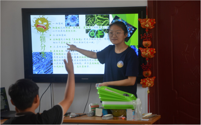 7月18日,團(tuán)隊(duì)以“小小農(nóng)夫”為主題開(kāi)展了一系列農(nóng)業(yè)科普課程,結(jié)合當(dāng)?shù)剞r(nóng)業(yè)的實(shí)際情況,為孩子們帶來(lái)了生動(dòng)有趣的農(nóng)業(yè)科普知識(shí),從農(nóng)作物的生長(zhǎng)周期到農(nóng)業(yè)生態(tài)系統(tǒng)的奧秘,從傳統(tǒng)農(nóng)業(yè)技術(shù)到現(xiàn)代農(nóng)業(yè)科技的應(yīng)用,豐富多彩的內(nèi)容激發(fā)了孩子們對(duì)農(nóng)業(yè)的濃厚興趣。在課堂上,支教老師運(yùn)用多媒體教學(xué)手段,展示了豐富多彩的農(nóng)業(yè)圖片和視頻,深入淺出地講解了農(nóng)作物的生長(zhǎng)過(guò)程、農(nóng)業(yè)生態(tài)系統(tǒng)的構(gòu)成以及現(xiàn)代農(nóng)業(yè)技術(shù)的發(fā)展。學(xué)生們聚精會(huì)神地聽(tīng)講,不時(shí)舉手提問(wèn),與老師積極互動(dòng)。此次農(nóng)業(yè)知識(shí)科普活動(dòng),不僅增長(zhǎng)了學(xué)生們的見(jiàn)識(shí),還激發(fā)了他們對(duì)農(nóng)業(yè)的興趣,為推動(dòng)當(dāng)?shù)剞r(nóng)業(yè)的發(fā)展注入了新的活力。