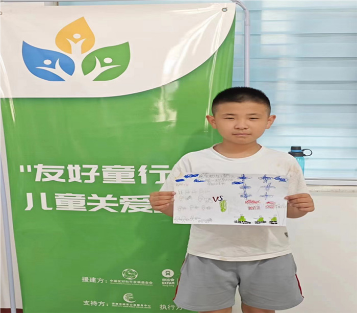 下午,志愿者們給孩子們出了一道小題,讓孩子們根據(jù)上午學(xué)的內(nèi)容畫(huà)一幅畫(huà)。這種方法不僅讓孩子們鞏固了上午學(xué)的知識(shí),更開(kāi)動(dòng)了他們的腦筋,發(fā)揮了他們的想象力。讓我們一睹孩子們的精彩畫(huà)作。