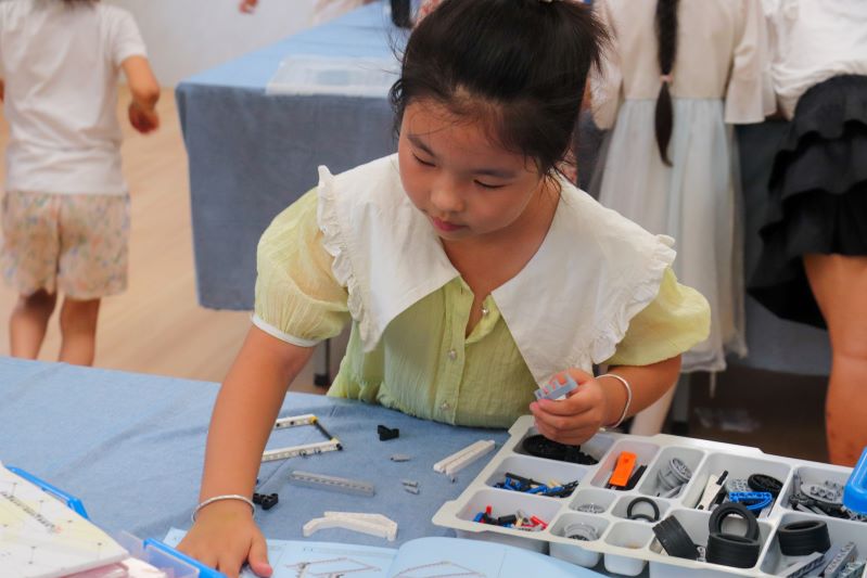 到了下午的自由活動(dòng)時(shí)間,積木成了孩子們的新寵。實(shí)踐團(tuán)的成員們帶來了各式各樣的積木,從簡(jiǎn)單的拼接到復(fù)雜的結(jié)構(gòu)搭建,小學(xué)生們展現(xiàn)出了驚人的動(dòng)手能力和團(tuán)隊(duì)協(xié)作精神。在一片片色彩斑斕的積木堆砌中,孩子們的想象力得到了充分的發(fā)揮,他們搭建起了屬于自己的小小世界,而實(shí)踐團(tuán)的成員們則在一旁默默支持,偶爾給出一些建議,幫助孩子們克服難題。
