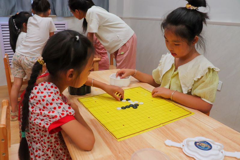 午餐過后,實(shí)踐團(tuán)的成員們并沒有休息,而是迅速轉(zhuǎn)換角色,成為了孩子們的五子棋導(dǎo)師。五子棋不僅鍛煉了孩子們的邏輯思維能力,還讓他們學(xué)會(huì)了耐心和策略。每一張棋盤前都圍坐著一群聚精會(huì)神的小棋手,他們認(rèn)真思考每一步棋,而實(shí)踐團(tuán)的成員則在一旁指導(dǎo),鼓勵(lì)孩子們發(fā)揮創(chuàng)造力,勇敢嘗試不同的走法。