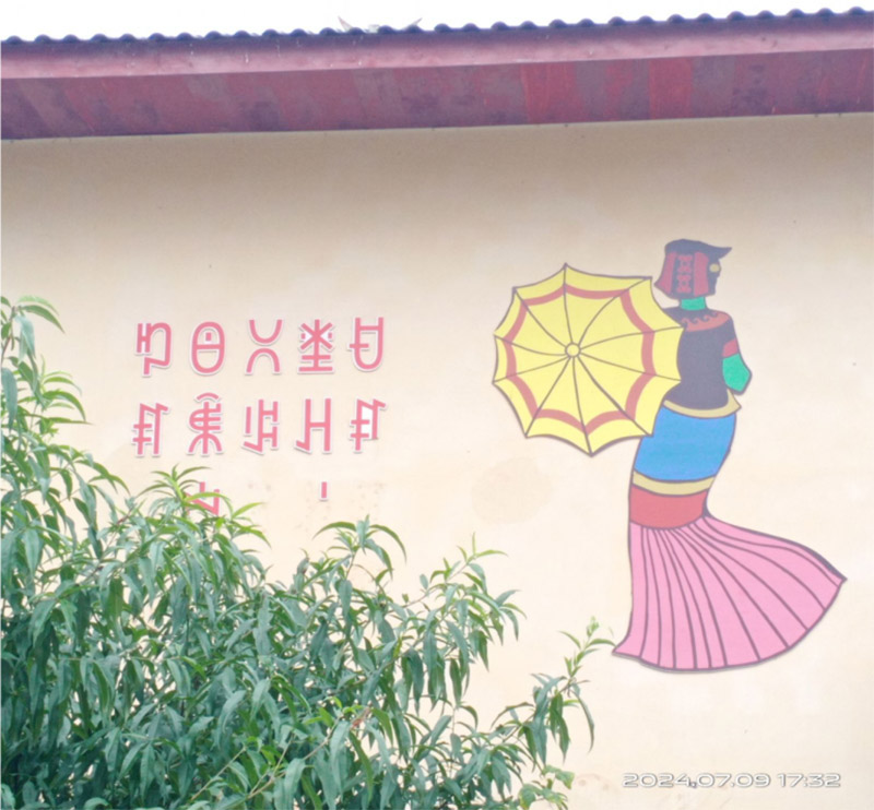 村上能夠?qū)崿F(xiàn)經(jīng)濟(jì)可持續(xù)增長的支柱太少,青壯年勞動力均外出打工,村里只剩下老人和孩子。來到這里,便被撲面而來的民族氣息所感染,村民均穿著彝族服飾帶著彝族風(fēng)情的頭飾,房屋的墻壁上彝文彝語比比皆是,就連村干部同我們交流時,也是彝漢雙語慢慢講。