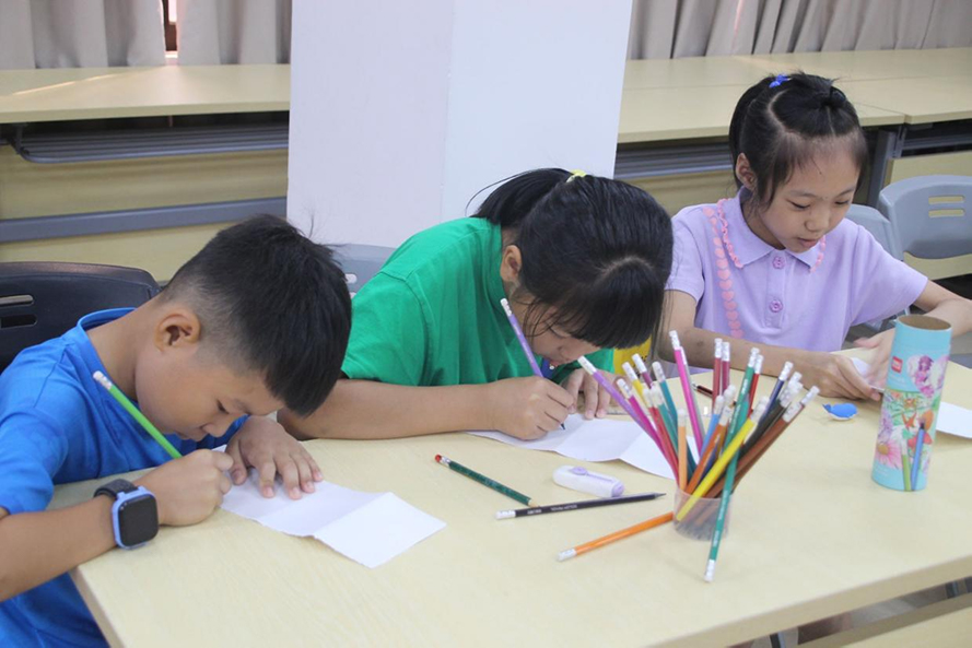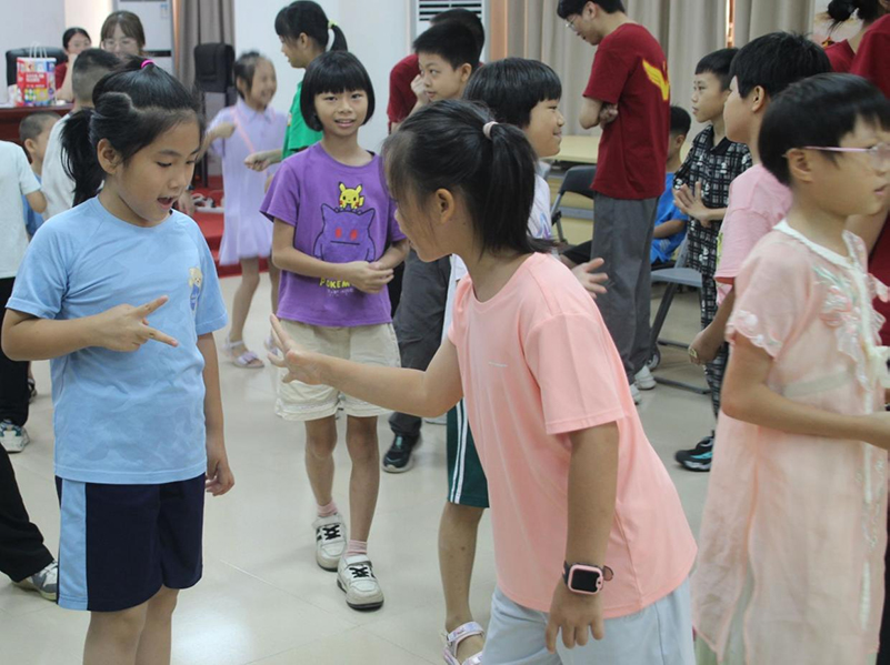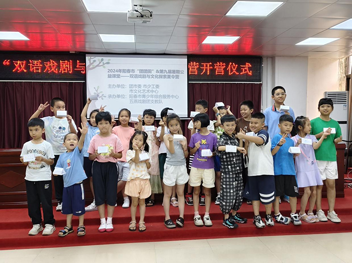 為深入學(xué)習(xí)貫徹習(xí)近平新時(shí)代中國(guó)特色社會(huì)主義思想,發(fā)揮高校人才優(yōu)勢(shì)助力鄉(xiāng)村振興,并切實(shí)推進(jìn)“百千萬(wàn)工程”。這既為小學(xué)教育群師范生專業(yè)技能培養(yǎng)和實(shí)踐打造平臺(tái),又能為助力鄉(xiāng)村教育事業(yè)和小學(xué)生核心素養(yǎng)發(fā)展貢獻(xiàn)青年學(xué)子的力量。廣東省外語(yǔ)藝術(shù)職業(yè)學(xué)院基礎(chǔ)教育學(xué)院五燕戲劇團(tuán)支教隊(duì)于2024年7月12日至7月18日,采用線下的方式,在陽(yáng)春市青少年綜合服務(wù)中心進(jìn)行授課,共開(kāi)展為期7天的暑期社會(huì)實(shí)踐活動(dòng)。本次實(shí)踐活動(dòng)以 “傳統(tǒng)文化”與“雙語(yǔ)戲劇”的融合,為學(xué)生們們帶來(lái)了雙語(yǔ)戲劇、韻律操、剪紙、魚(yú)燈、漆扇以及植物拓染等16門課程。這不僅充實(shí)了學(xué)生們的暑假生活,還增強(qiáng)了學(xué)生們對(duì)傳統(tǒng)文化和雙語(yǔ)戲劇的了解。