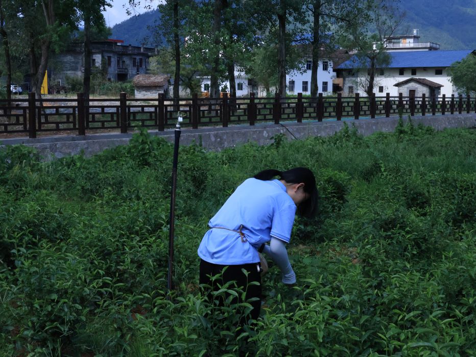 圖為實踐團成員采摘茶葉。施夢媛 供圖