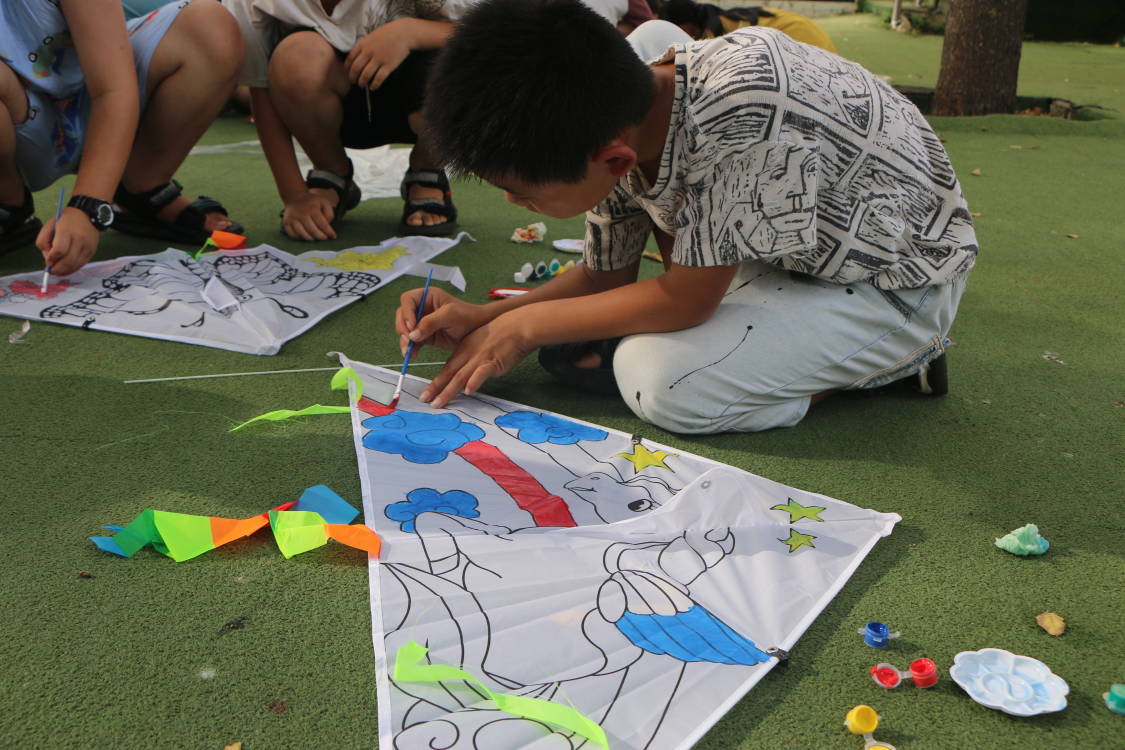 有的孩子細(xì)心地為風(fēng)箏涂上了五彩斑斕的彩虹,每一道色彩都像是他們心中對(duì)美好生活的向往與期待;有的孩子則選擇了卡通人物作為主題,用稚嫩卻充滿靈氣的筆觸,為風(fēng)箏賦予了生動(dòng)的故事與情感,展現(xiàn)了他們純真無邪的內(nèi)心世界。整個(gè)活動(dòng)現(xiàn)場瞬間變成了一個(gè)色彩斑斕的童話世界,每一聲歡笑、每一筆色彩,都是孩子們對(duì)未來生活的美好憧憬。