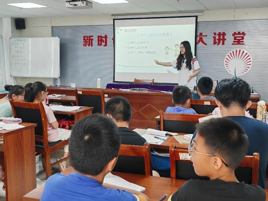 活動伊始,團隊成員圍繞“時間管理——做時間的小主人”這一主題,帶領(lǐng)孩子們學習制定計劃,合理分配時間,而“感受一分鐘”的小游戲讓孩子們體會到時間的流逝在“量化時間”的環(huán)節(jié)中,孩子們通過一分鐘打卡挑戰(zhàn)了解到一分鐘內(nèi)可以完成許多不同的事情,激發(fā)了他們對時間管理的興趣。孩子們在繪制自己的生命線過程中,深刻體會到生命的珍貴與時間的無價,從而學會了珍惜每一分每一秒。在探討“小亮和小蘭的暑假生活”這一故事時,孩子們發(fā)現(xiàn)了自己在時間管理上的短板,并學會了更高效的時間管理技巧。最后,在團隊成員的悉心指導(dǎo)下,孩子們制定了自己的暑假計劃,這一過程有助于他們養(yǎng)成自律的習慣。