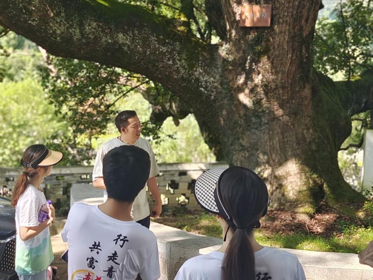 “山頭鄭村于宋代開集,興盛于清末近代,距今已有一千多年歷史,曾被譽(yù)為天臺“十大市”之一,有“小上海”的美稱。”在古樹這位千歲老人的見證和陪同下,山頭鄭村書記鄭軍委耐心地為同學(xué)們介紹起村子的起源與發(fā)展。