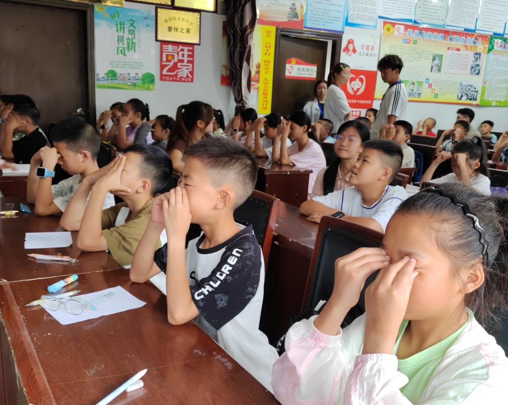 志愿者帶孩子們學(xué)習(xí)眼保健操