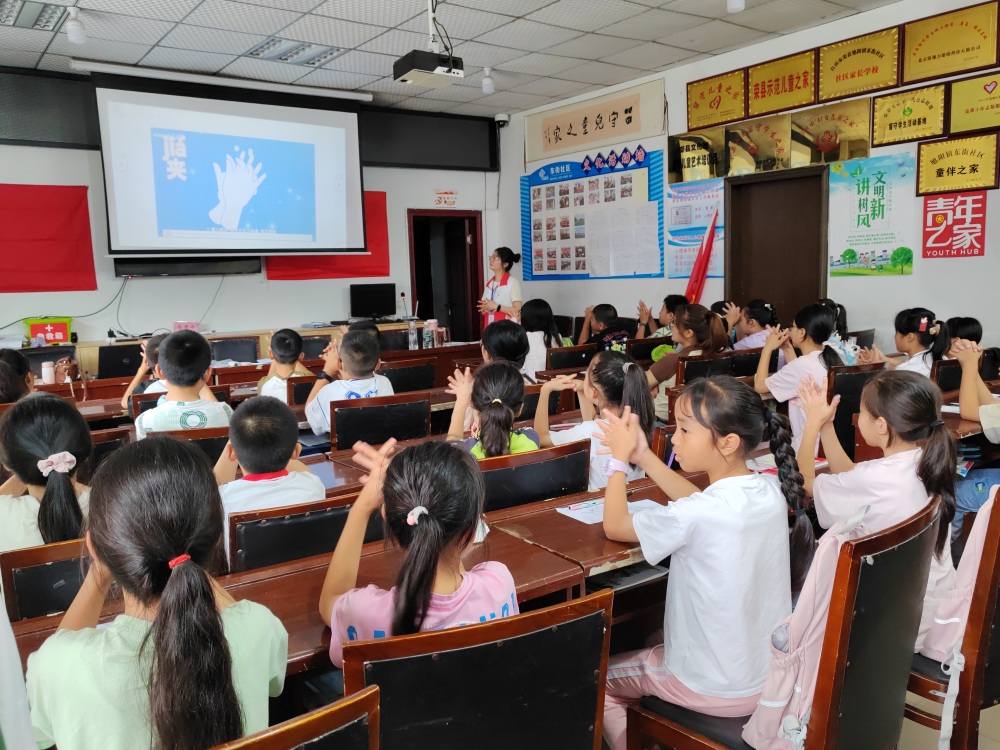 除了理論知識的傳授,負(fù)責(zé)人還設(shè)計了趣味游戲,讓孩子們在游戲中學(xué)習(xí)。通過繪畫和搶答的形式,讓孩子們加深對人體結(jié)構(gòu)的理解,學(xué)會如何在日常生活中預(yù)防疾病。負(fù)責(zé)人手把手地教孩子們七步洗手法和眼保健操,選出操作最為準(zhǔn)確的孩子進(jìn)行表揚,進(jìn)一步強調(diào)洗手的重要性。讓孩子們明白了這個簡單卻至關(guān)重要的健康習(xí)慣,為他們筑起健康的城墻。
