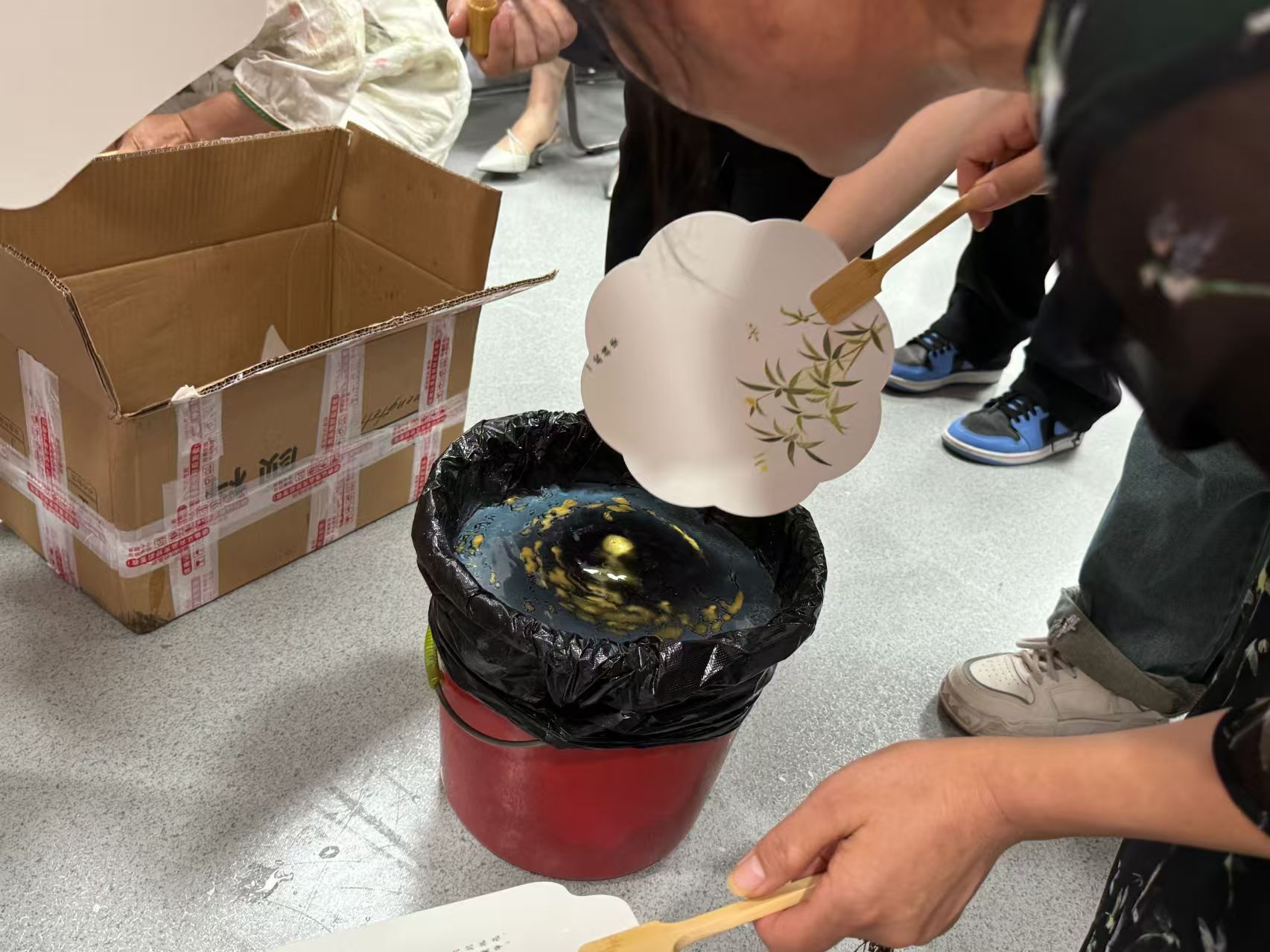 以漆飾扇,情意暗藏作為東方美學(xué)的重要物質(zhì)載體,扇子超越了其原始的納涼功能,其中尤以漆扇最具藝術(shù)價(jià)值。這類工藝品憑借溫潤似玉的材質(zhì)特性與深邃瑰麗的色彩表現(xiàn),歷來受到文人階層的珍視。漆扇制作工藝集中體現(xiàn)了中國傳統(tǒng)漆藝的精髓,通過有機(jī)整合繪畫技法、雕刻工藝及鑲嵌技術(shù)等多種傳統(tǒng)手工藝,使每件作品都呈現(xiàn)出獨(dú)特的藝術(shù)特質(zhì)。在實(shí)踐環(huán)節(jié)中,參與者通過自主調(diào)配色彩與繪制扇面的創(chuàng)作過程,深入體驗(yàn)了漆扇制作的藝術(shù)魅力。據(jù)志愿者錢女士觀察,一位女性參與者在初始階段對色彩搭配存有顧慮,但在參考經(jīng)典作品后,最終采用靛藍(lán)底色與金粉點(diǎn)綴的創(chuàng)意組合,成品既保持了傳統(tǒng)韻味又彰顯出現(xiàn)代審美趣味;該參與者反復(fù)欣賞自己的創(chuàng)作成果時(shí)由衷贊嘆:"傳統(tǒng)工藝竟能如此完美地融入當(dāng)代審美理念"。