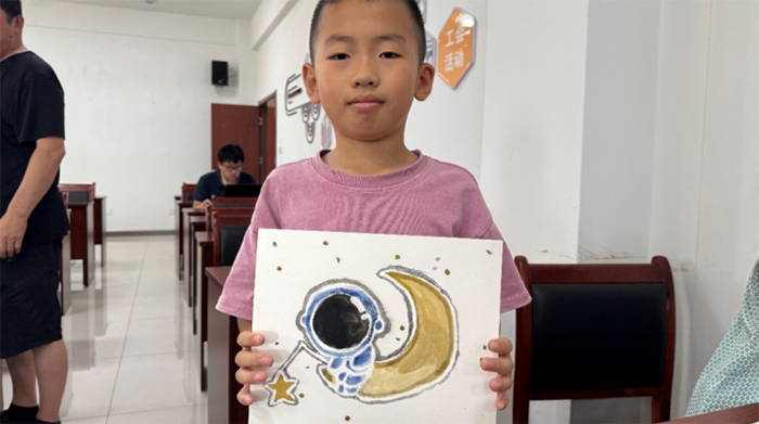 實踐團隊注重科技與文化的融合創(chuàng)新。在手工課程中,志愿者巧妙地將“兩彈一星”精神與紡織非遺相結(jié)合,引導孩子們在創(chuàng)作過程中體會科學家們的創(chuàng)新精神和堅韌品質(zhì)。例如,在縫制香囊時,志愿者講述科學家在艱苦條件下堅持科研的故事,鼓勵孩子們在手工制作中克服困難,發(fā)揮創(chuàng)造力。在制作蠟染手工品時,孩子們結(jié)合學習的兩彈一星精神,各自創(chuàng)造出了獨一無二的作品。