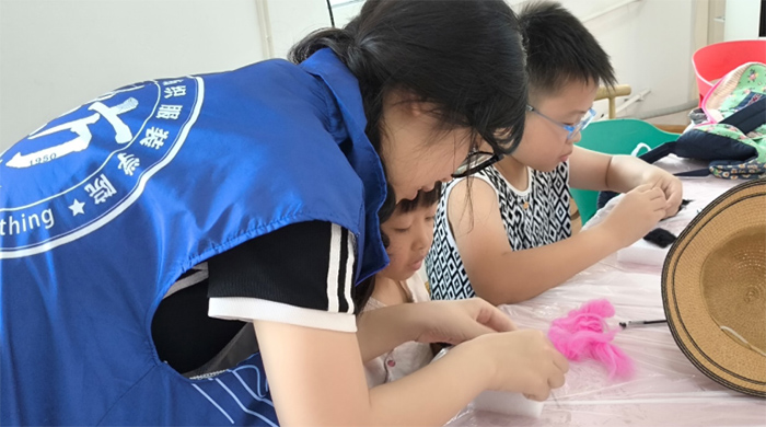 圖為志愿者指導孩子們制作羊毛氈。張?zhí)熨n 供圖