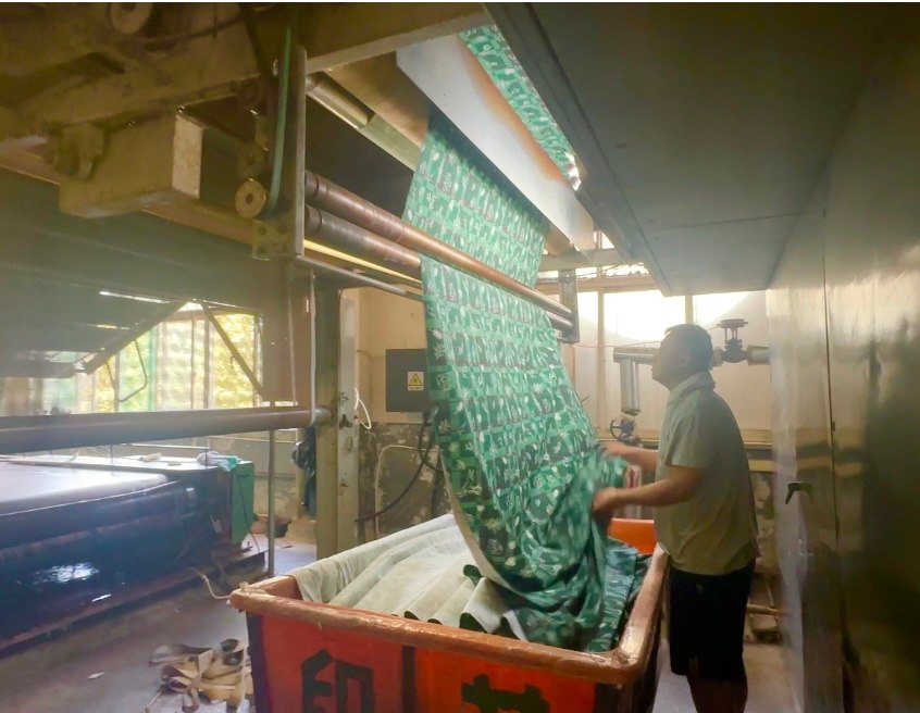 技術(shù)研發(fā)人員向?qū)嵺`團(tuán)重點(diǎn)介紹印花產(chǎn)品生產(chǎn)流程,將非遺扎染技藝與數(shù)碼印花技術(shù)結(jié)合,企業(yè)成功開發(fā)出兼具美學(xué)價(jià)值與實(shí)用功能的高端絲綢制品。十二月令花神、琺瑯彩等系列在豐富產(chǎn)品線的同時,顯著提升了絲綢制品的附加值和市場競爭力。