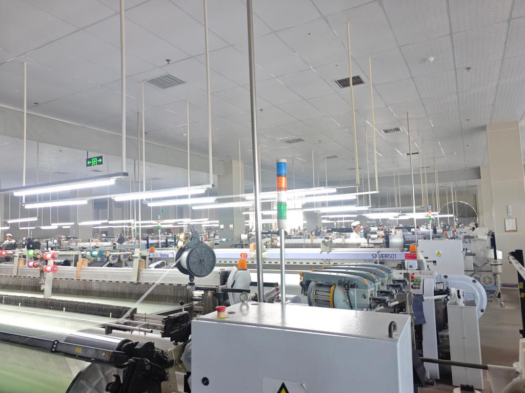 在紡絲車間的技術(shù)負(fù)責(zé)人的帶領(lǐng)下,實(shí)踐團(tuán)成員看到在寬幅劍桿織機(jī)紡絲區(qū),企業(yè)購進(jìn)的意大利進(jìn)口織造設(shè)備幅寬達(dá)3.6米,每分鐘投緯超過300次,配合電子提花系統(tǒng),可以精準(zhǔn)織造復(fù)雜圖案。同時實(shí)踐團(tuán)成員還注意到,通過物聯(lián)網(wǎng)技術(shù),每臺設(shè)備都接入了智能監(jiān)控系統(tǒng),實(shí)時采集運(yùn)行數(shù)據(jù)并進(jìn)行分析優(yōu)化。企業(yè)通過將傳統(tǒng)絲綢工藝與現(xiàn)代智能制造進(jìn)行結(jié)合,并采用數(shù)碼提花技術(shù)精準(zhǔn)還原傳統(tǒng)紋樣,向?qū)嵺`團(tuán)成員展示了傳統(tǒng)工藝如何在新時代煥發(fā)生機(jī)。