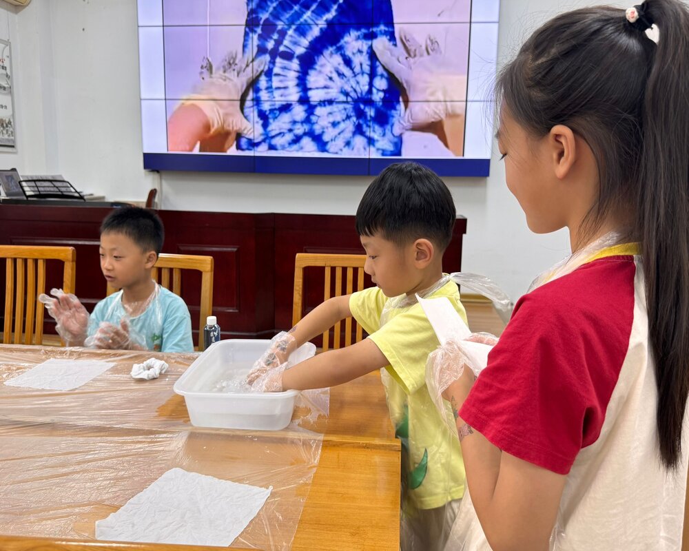 溯源千年技藝,聆聽文化回響 活動(dòng)籌備階段,志愿者們精心編撰了適合兒童理解的扎染知識(shí)手冊(cè),以故事化講解為切入點(diǎn),引領(lǐng)孩子們回溯扎染的發(fā)展軌跡:從秦漢時(shí)期 “纈染” 技藝的雛形,到如今躋身國家級(jí)非物質(zhì)文化遺產(chǎn)的歷程。當(dāng)講述到云南白族婦女沿用板藍(lán)根染布的古老傳統(tǒng)時(shí),孩子們眼中躍動(dòng)的好奇光芒,讓志愿者們深切感受到文化傳承的種子正在悄然生長。