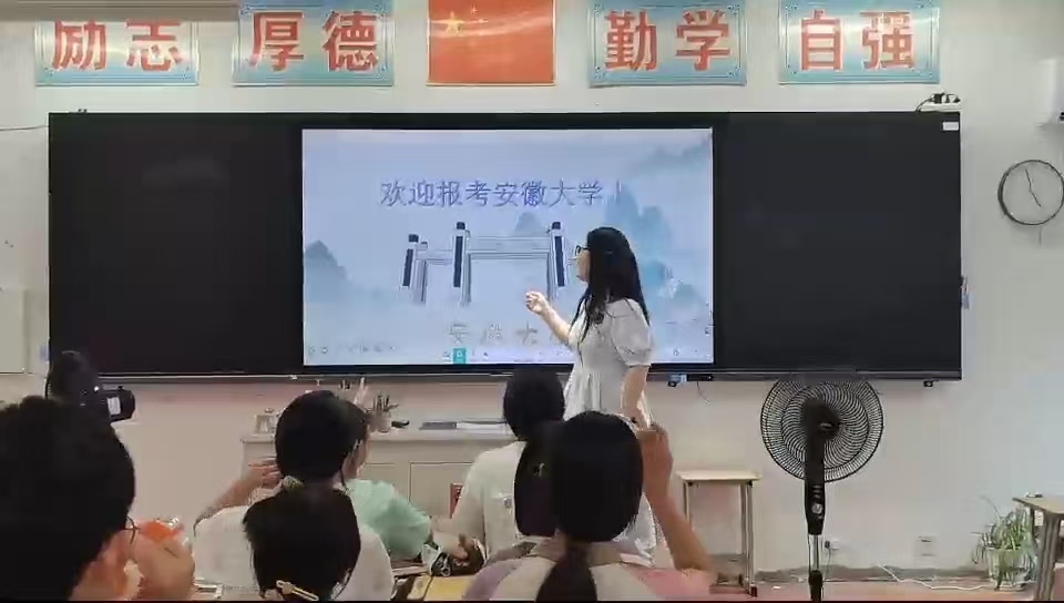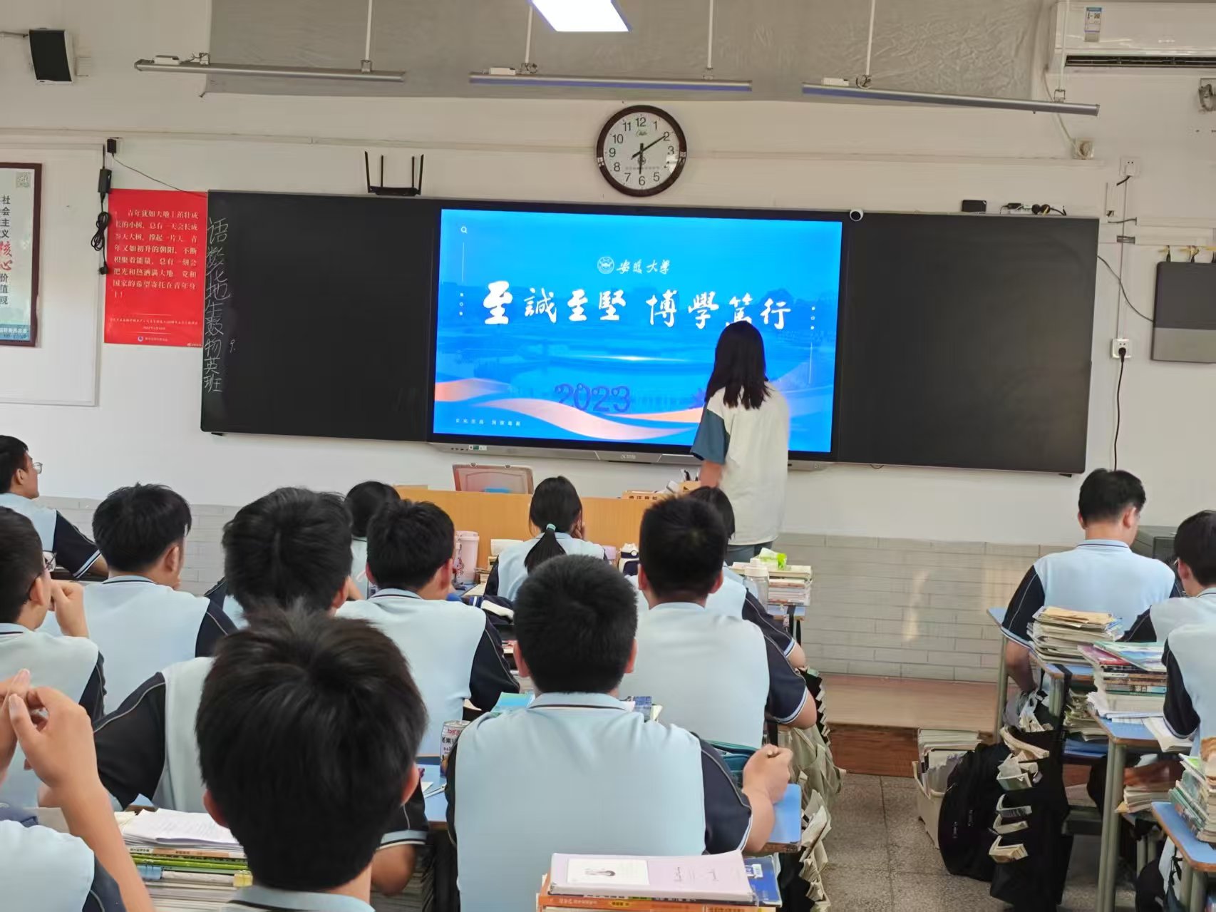 多維宣講,傳遞溫度 在宣講活動中,團隊采用了豐富多樣的形式,全方位展示安徽大學的風采。互聯網學院2025級互聯網金融專業(yè)的孟子程同學,在肥東一中、肥東圣泉中學的宣講中,通過精美的PPT和精彩的視頻,展示了安徽大學優(yōu)美的校園環(huán)境、豐富的專業(yè)設置,還分享了自己豐富多彩的大學生活經歷,讓高中學子們對大學生活充滿了向往。人工智能學院大二機器人工程專業(yè)的汪子瑋擔任宣講指導員,他深知學生的需求,特別準備了備考策略與志愿填報的相關內容。在宣講過程中,他注重與學生互動,耐心解答學生的疑問,并根據現場氛圍靈活調整宣講節(jié)奏,極大地增強了學生們的參與感 。