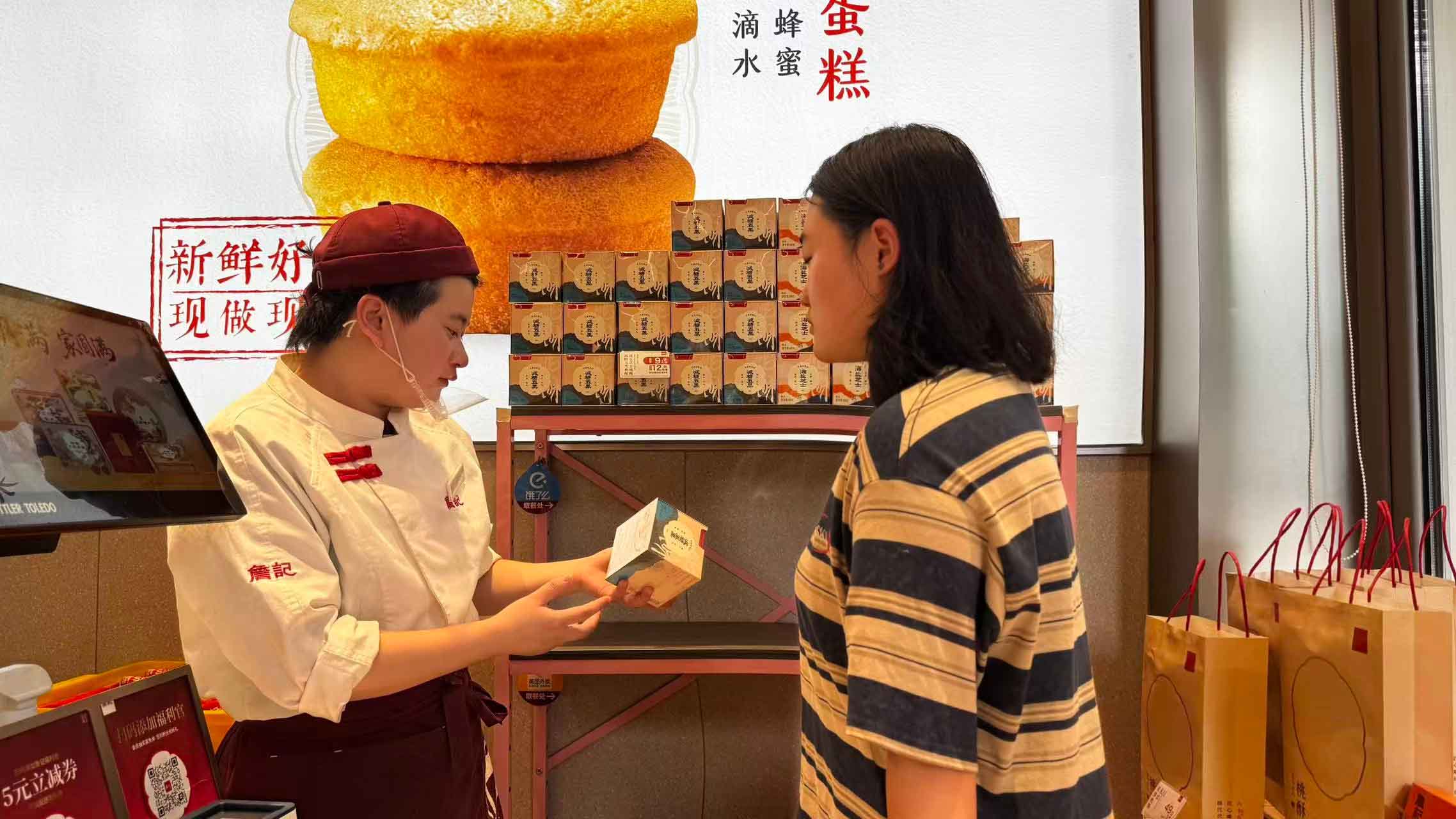 在門店服務(wù)區(qū)域,店員向?qū)嵺`團(tuán)隊(duì)介紹了詹記桃酥的經(jīng)營理念與顧客反饋。“我們始終堅(jiān)持‘現(xiàn)做現(xiàn)賣、當(dāng)日清零’的原則,未售完的產(chǎn)品會(huì)在當(dāng)日閉店后統(tǒng)一處理,確保顧客買到的每一塊桃酥都新鮮可口。”店員表示,門店每天接待的顧客中,有近六成是回頭客,“很多老顧客說,我們家的桃酥讓他們想起了小時(shí)候的味道,這是對(duì)我們工藝最大的認(rèn)可。”