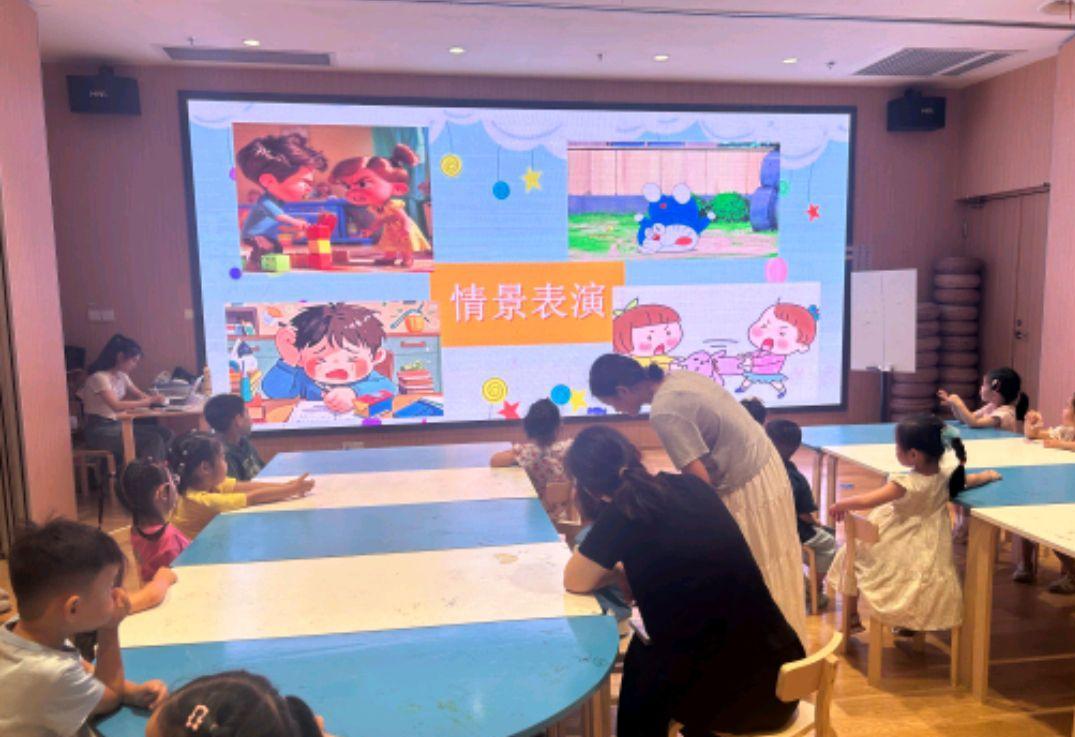 分段授課:你講我?guī)妥屨n堂不停歇每天的課程里,2名主講成員輪流上陣,每人負責(zé)10分鐘的故事片段講解。一位主講拿起小豬玩偶,邊擺弄邊講“蓋房子”的情節(jié),手里還舉著稻草、積木等實物道具,讓孩子們看得明明白白;另一位主講則配合著切換投影儀上的卡通圖片,講到“吹倒房子(blow down)”時,還特意做了個夸張的吹氣動作,幫孩子們理解意思。旁邊的輔助成員也沒閑著,一會兒遞個道具,一會兒輕聲提醒調(diào)皮的孩子坐好。要是發(fā)現(xiàn)有孩子眼神飄了,就馬上帶頭玩起“單詞拍手”游戲——說一個單詞拍兩下手,很快就把大家的注意力拉了回來,課堂節(jié)奏始終緊湊又活潑。