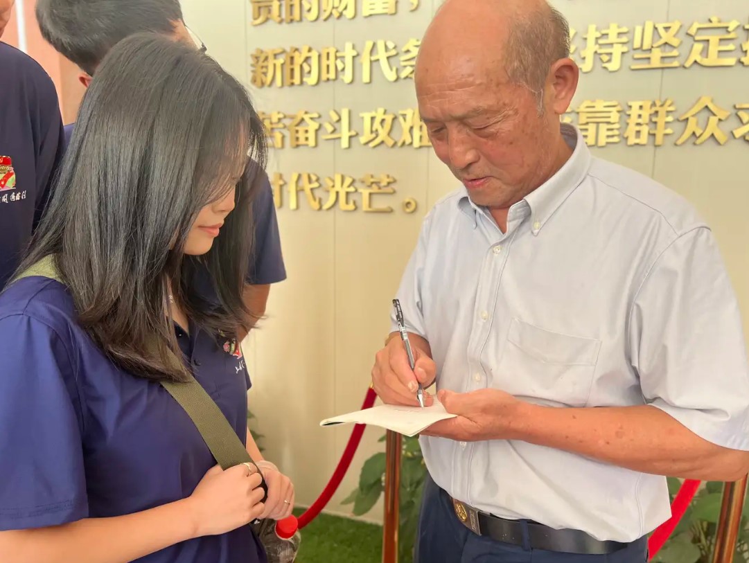 圖為巾幗英杰曾志的孫子石文龍為實(shí)踐團(tuán)成員寄語