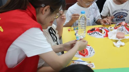 隨后,進(jìn)入到實(shí)際操作環(huán)節(jié)。支教團(tuán)成員耐心地指導(dǎo)孩子們勾勒臉譜輪廓、調(diào)配顏料、上色。一開始,有的孩子因?yàn)檎莆詹缓卯嫻P力度,線條歪歪扭扭,色彩也涂得不太均勻,但在支教團(tuán)成員手把手的幫助下,逐漸找到了感覺(jué)。