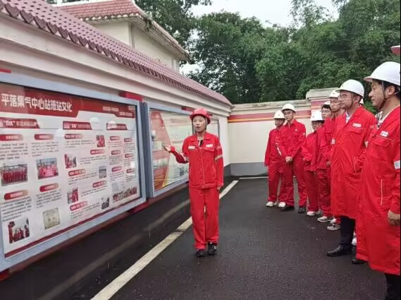 了解站場的歷史文化:隊(duì)員們剛剛進(jìn)入工作站場,熱心的現(xiàn)場工作人員就為大家介紹了平落集氣站多年來形成的獨(dú)特文化。扎根川西近三十載,站場見證了中國天然氣開發(fā)的歷程:1995年隨平落壩氣田開發(fā)而建,開創(chuàng)川西超深井脫硫先河;2006年擴(kuò)容成為成都經(jīng)濟(jì)圈核心供氣樞紐;2020年轉(zhuǎn)型為智能示范站場。其文化融合石油精神與巴蜀特質(zhì):以“攻堅(jiān)文化”突破封鎖(首套國產(chǎn)脫硫設(shè)備留存至今);以“安全文化”守護(hù)30年零重大事故;以“生態(tài)文化”實(shí)現(xiàn)氣田與古鎮(zhèn)共生(獲評省級綠色單元);以“社區(qū)紐帶”惠及民眾超萬人次(能源開放日、工匠長廊)。這座龍門山麓崛起的能源堡壘,從戈壁帳篷到智能廠區(qū)的變遷,生動踐行著“為天府送福氣”的使命,成為石油精神與時代交融的豐碑。