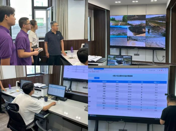 跟隨著技術(shù)人員的腳步,實(shí)踐隊(duì)參觀了集水情實(shí)時(shí)監(jiān)控、標(biāo)準(zhǔn)化機(jī)房與智慧平臺(tái)于一體的現(xiàn)代化中樞。巨大的電子屏幕上,渭河、涇河、北洛河、黃河等主要河流的站網(wǎng)分布、實(shí)時(shí)畫(huà)面及水位、流量等關(guān)鍵數(shù)據(jù)一目了然。水文中心汪總工介紹道:“通過(guò)引入數(shù)字孿生、大數(shù)據(jù)分析等先進(jìn)技術(shù),我們構(gòu)建了全方位、全天候的精準(zhǔn)監(jiān)測(cè)體系。如今,預(yù)警決策更加高效智能,為防洪減災(zāi)贏得了寶貴時(shí)間。”隊(duì)員們贊嘆不已,紛紛表示:“以往在課堂上聽(tīng)聞‘智慧水利’,今日得見(jiàn)其實(shí)戰(zhàn)應(yīng)用,才真正體會(huì)到科技賦能帶來(lái)的巨大變革。”