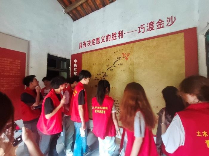 站在金沙江岸邊,奔騰不息的江水映入眼簾,滔滔江流仿佛訴說著當(dāng)年紅軍戰(zhàn)士們渡江時(shí)的艱辛與不易。通過現(xiàn)場(chǎng)參觀,成員們進(jìn)一步了解了紅軍巧渡金沙江的背景和細(xì)節(jié)。在遺址中實(shí)踐隊(duì)員了解到了一個(gè)個(gè)感人至深的紅色故事,讓大家深刻體會(huì)到革命先輩堅(jiān)定的理想信念和大無畏的犧牲精神。