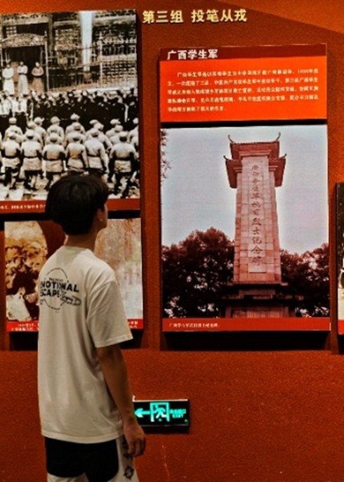 8月20日,油小志實(shí)踐團(tuán)隊(duì)奔赴昆侖關(guān)戰(zhàn)役舊址,在這片承載著桂南會(huì)戰(zhàn)熱血記憶的土地上,回溯先輩抗?fàn)帤v程。陳列館內(nèi),戰(zhàn)士們用過(guò)的簡(jiǎn)陋武器、帶著彈痕的軍裝、還原戰(zhàn)役的沙盤(pán),將“中華兒女舍生忘死御外敵”的歷史場(chǎng)景具象化;“共產(chǎn)黨在廣西抗戰(zhàn)中的作用”展區(qū),更讓隊(duì)員們深刻認(rèn)識(shí)到,正是黨的引領(lǐng)與動(dòng)員,讓廣西民眾的救亡熱情匯聚成抗擊侵略的磅礴力量。