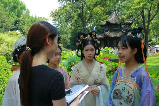 讓古典園林“活”起來,體驗(yàn)感是關(guān)鍵——游覽體驗(yàn)盼升級(jí) 在園林東部的“秫香館”前,團(tuán)隊(duì)遇到了來自江西的四位小女孩,她們身著漢服,妝容精致,頭戴發(fā)飾,是拙政園內(nèi)獨(dú)特的一道風(fēng)景。她們是小學(xué)同學(xué),慕名前來游玩,對(duì)園內(nèi)建筑風(fēng)景十分贊嘆,同時(shí)她們也針對(duì)提升游覽體驗(yàn)感提出人流量控制的相關(guān)建議。其中一位小女孩坦言,節(jié)假日熱門景點(diǎn)前的人流容易扎堆,有時(shí)想仔細(xì)觀賞建筑細(xì)節(jié),卻被擁擠的人群擋住視線,“要是能在高峰時(shí)段引導(dǎo)分流,體驗(yàn)感也許會(huì)更好。”