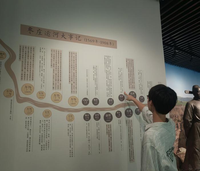 作為國(guó)家一級(jí)博物館,棗莊市博物館的明清運(yùn)河文化展區(qū)堪稱寶庫(kù),漕運(yùn)文書(shū)、古船構(gòu)件等珍貴文物在此靜靜訴說(shuō)著往昔歲月。實(shí)踐隊(duì)成員一踏入展區(qū),便迅速投身緊張有序的調(diào)研工作。他們化身 "歷史偵探",細(xì)致記錄每件文物的年代、用途及關(guān)聯(lián)歷史事件,不放過(guò)任何細(xì)微之處。同時(shí),隊(duì)員們結(jié)合館內(nèi)方志史料,對(duì)運(yùn)河棗莊段的開(kāi)鑿背景、航運(yùn)規(guī)模及對(duì)區(qū)域文化的影響展開(kāi)深入考證。在與博物館工作人員的積極交流中,他們不斷深化對(duì)運(yùn)河歷史的認(rèn)識(shí),逐步勾勒出棗莊運(yùn)河的文脈輪廓。