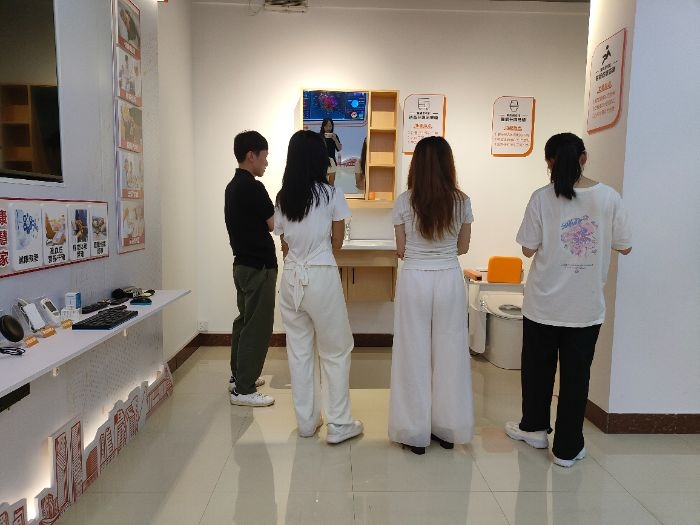 圖為團(tuán)隊(duì)成員了解智能養(yǎng)老用品。 梁鳳瑛 供圖