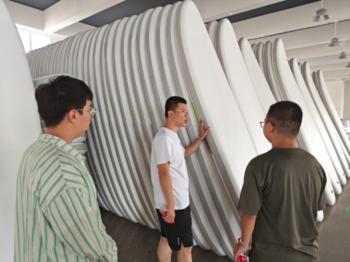 進(jìn)入公司,研發(fā)部部長熱情接待隊員們并主持座談會。隊員們詳細(xì)匯報了大學(xué)生創(chuàng)新創(chuàng)業(yè)訓(xùn)練計劃項目“充氣式槳板的力學(xué)性能研究”的研究內(nèi)容,重點介紹了通過結(jié)構(gòu)優(yōu)化提升槳板抗沖擊性的實驗數(shù)據(jù)與模擬結(jié)果。企業(yè)技術(shù)團(tuán)隊對項目的前沿性和實用性表示肯定,認(rèn)為其研究方法可為產(chǎn)品耐候性改進(jìn)提供參考。雙方就材料復(fù)合工藝、膠層附著力測試等具體問題展開討論,并約定后續(xù)開展聯(lián)合實驗。