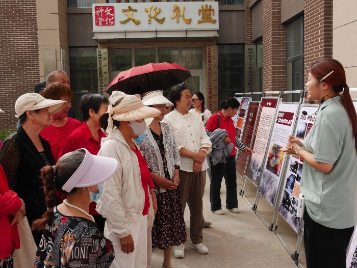 活動現(xiàn)場,團(tuán)隊(duì)成員首先為社區(qū)居民細(xì)致講解精心制作的展板內(nèi)容。展板圍繞新疆在抗日戰(zhàn)爭中的重要貢獻(xiàn)展開,從新疆作為西北國際交通線關(guān)鍵樞紐,承擔(dān)超80%蘇聯(lián)援華物資轉(zhuǎn)運(yùn)任務(wù)的“紅色通道”作用,到當(dāng)?shù)剀娒窬杩罹栉铩⒊闪⒖谷站葒笤畷⑿藿ê娇栈亍⒈U蠎?zhàn)略物資生產(chǎn),以及各族群眾在抗日民族統(tǒng)一戰(zhàn)線號召下開展救國運(yùn)動等方面,生動再現(xiàn)了那段波瀾壯闊的歷史,讓社區(qū)居民深入了解新疆為全國抗戰(zhàn)作出的不可磨滅貢獻(xiàn),激發(fā)大家的民族自豪感與愛國情。