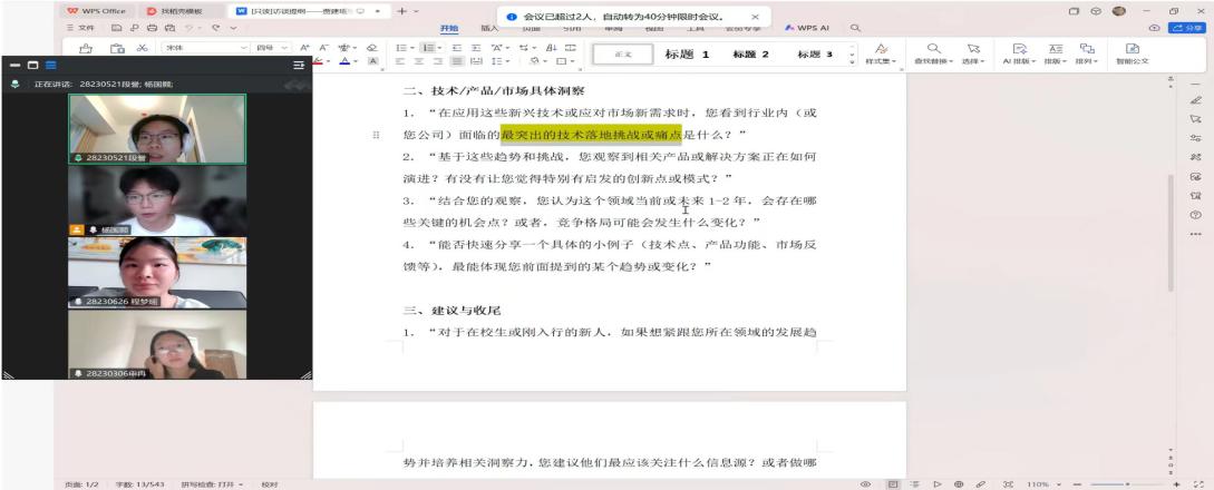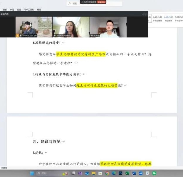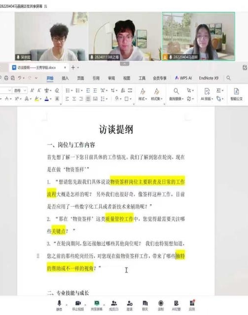 同時(shí),學(xué)院協(xié)助實(shí)踐團(tuán)隊(duì)與今世緣搭建高效溝通渠道,提前對(duì)接嘉賓崗位特性與時(shí)間安排,并結(jié)合三位從業(yè)者的領(lǐng)域調(diào)整提綱:生產(chǎn)崗側(cè)重“工藝標(biāo)準(zhǔn)化”“基層鍛煉模式”,研發(fā)崗聚焦“新酒飲市場(chǎng)數(shù)據(jù)”“技術(shù)創(chuàng)新方向”,質(zhì)量管控崗圍繞“國(guó)標(biāo)要求”“實(shí)操風(fēng)險(xiǎn)點(diǎn)”優(yōu)化問(wèn)題,保障內(nèi)容契合崗位實(shí)際。團(tuán)隊(duì)提前做好騰訊會(huì)議測(cè)試、記錄分工、設(shè)備調(diào)試等準(zhǔn)備,確保訪(fǎng)談順利進(jìn)行。