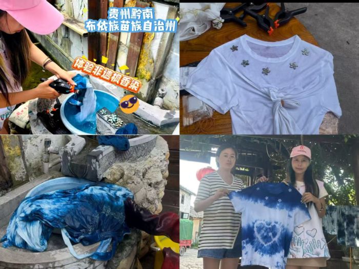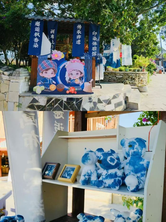 此次實(shí)踐,志愿隊(duì)還專程拜訪了兩位布依族楓香染非遺傳承人。據(jù)傳承人介紹,為響應(yīng)國家非遺保護(hù)與鄉(xiāng)村振興政策,積極選擇回歸家鄉(xiāng),在好花紅村設(shè)立非遺體驗(yàn)館與文創(chuàng)館,通過“線上+線下”結(jié)合的銷售模式推廣楓香染產(chǎn)品——既拓寬了經(jīng)濟(jì)增收渠道,也讓這項(xiàng)古老技藝走向更廣闊的舞臺(tái)。在文創(chuàng)館內(nèi),不僅有價(jià)值上千元、經(jīng)一針一線縫制的完整布依族服飾,還有融入現(xiàn)代審美設(shè)計(jì)的楓香染手提包、手機(jī)殼、玩偶等文創(chuàng)產(chǎn)品,傳統(tǒng)技藝與現(xiàn)代潮流碰撞出獨(dú)特魅力。
