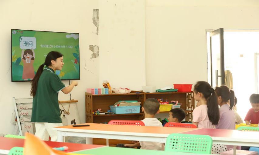 15日上午,實(shí)踐團(tuán)在華溪村“青少年之家”開(kāi)設(shè)推普小課堂,以“漢字起源與發(fā)展”為切入點(diǎn),結(jié)合動(dòng)畫(huà)視頻和互動(dòng)游戲,生動(dòng)講解普通話的規(guī)范發(fā)音與實(shí)用價(jià)值。成員們?cè)O(shè)計(jì)“猜漢字”“繞口令接龍”等趣味環(huán)節(jié),幫助孩子們?cè)谟螒蛑屑m正方言發(fā)音,提升語(yǔ)言表達(dá)能力。“終于說(shuō)對(duì)這個(gè)‘繞口令’了,以后我要天天練,把每一個(gè)都說(shuō)標(biāo)準(zhǔn)”一名四年級(jí)的小女孩在拿到繞口令挑戰(zhàn)獎(jiǎng)勵(lì)后開(kāi)心地說(shuō)到。