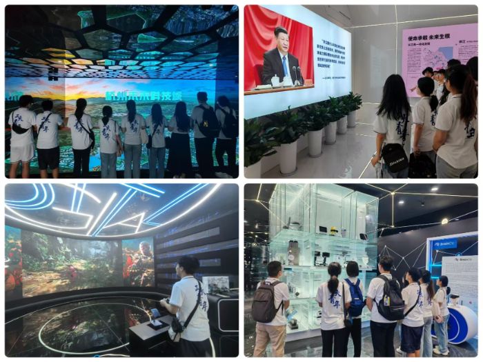 同時(shí),實(shí)踐團(tuán)隊(duì)也赴杭州未來(lái)科技城展館,深度體驗(yàn)前沿科技。在杭州“六小龍”專題展區(qū),實(shí)踐隊(duì)成員深入了解了深度求索、強(qiáng)腦科技等杭州“六小龍”企業(yè)的前沿技術(shù)與創(chuàng)新成果。展區(qū)通過(guò)傳統(tǒng)展示方式與互動(dòng)體驗(yàn)相結(jié)合,向大家生動(dòng)呈現(xiàn)了人工智能、智能制造、生物醫(yī)藥等領(lǐng)域的前沿應(yīng)用。同學(xué)們與DeepSeek互動(dòng)、現(xiàn)場(chǎng)體驗(yàn)國(guó)產(chǎn)游戲《黑神話·悟空》并近距離接觸新興產(chǎn)品,切身感受科技創(chuàng)新與技術(shù)落地帶來(lái)的震撼與魅力。