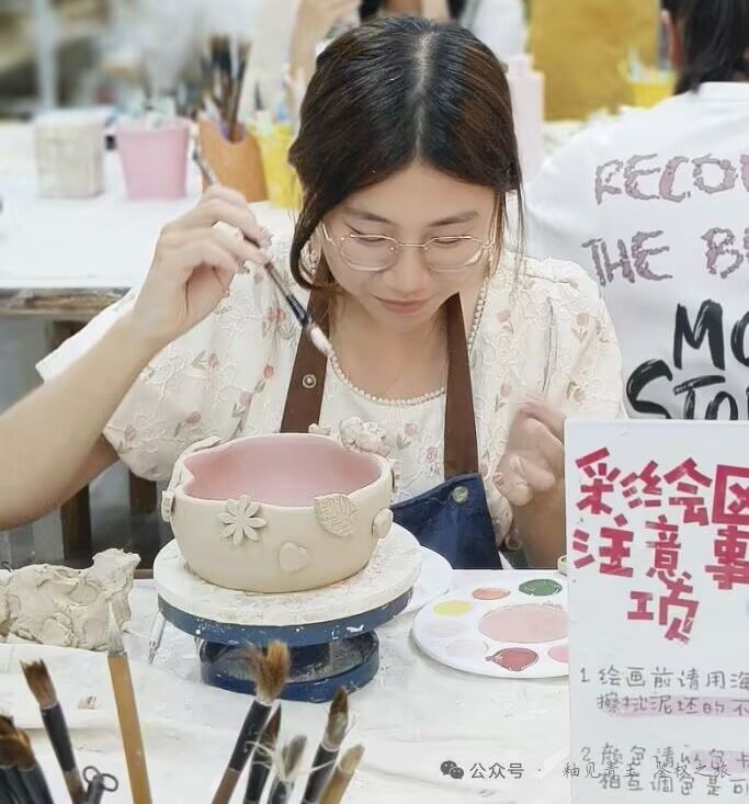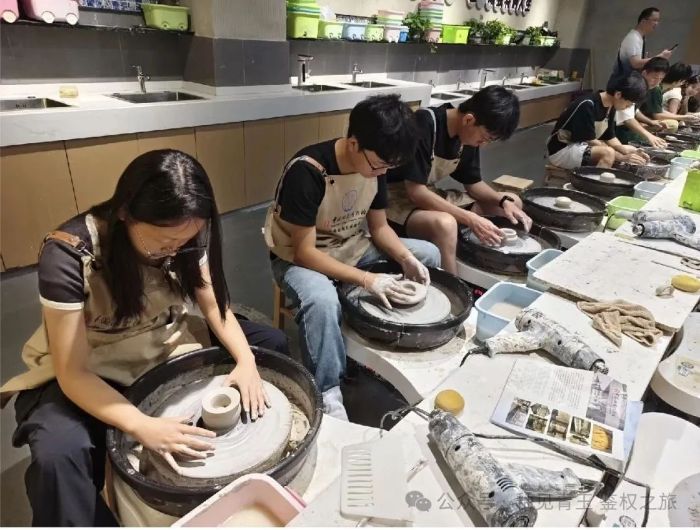 陶瓷手作坊,沉浸式感受陶瓷從泥到器的升華歷程。雙手沾著泥土,成員們嘗試揉泥、拉坯、修坯、刻畫、釉下粉彩——每一道工序都需要耐心與協(xié)作。有隊(duì)員在一次次失敗中感慨:“原來每一道曲線、每一筆紋樣,都是來之不易的。”