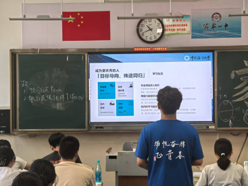 現(xiàn)場(chǎng)宣講大學(xué)概況與專(zhuān)業(yè)知識(shí) 8月20日,伴隨濟(jì)寧一中校園鈴聲,宣講正式開(kāi)啟。考慮到宣講對(duì)象是文科班學(xué)子,實(shí)踐隊(duì)在內(nèi)容呈現(xiàn)與形式設(shè)計(jì)上貼合其認(rèn)知特點(diǎn)與興趣點(diǎn),以“學(xué)校推介+專(zhuān)業(yè)解讀+生涯指導(dǎo)+互動(dòng)答疑”四維模式,帶來(lái)干貨滿(mǎn)滿(mǎn)、生動(dòng)有趣的升學(xué)規(guī)劃課。
