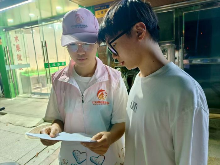 次日,志愿隊將活動范圍擴展至街頭社區(qū)。在新城街水果店旁,志愿者們向過往行人發(fā)放文化宣傳資料,詳細介紹侗族大歌的獨特唱腔和風雨橋建筑的精巧構造。同時,志愿隊還深入居民家中,通過平板設備展示侗族服飾的精美紋樣和民俗活動場景,與居民進行面對面的文化交流。這種入戶宣傳的方式使居民能夠更直觀地感受侗族文化的魅力,增強了文化傳播的效果。