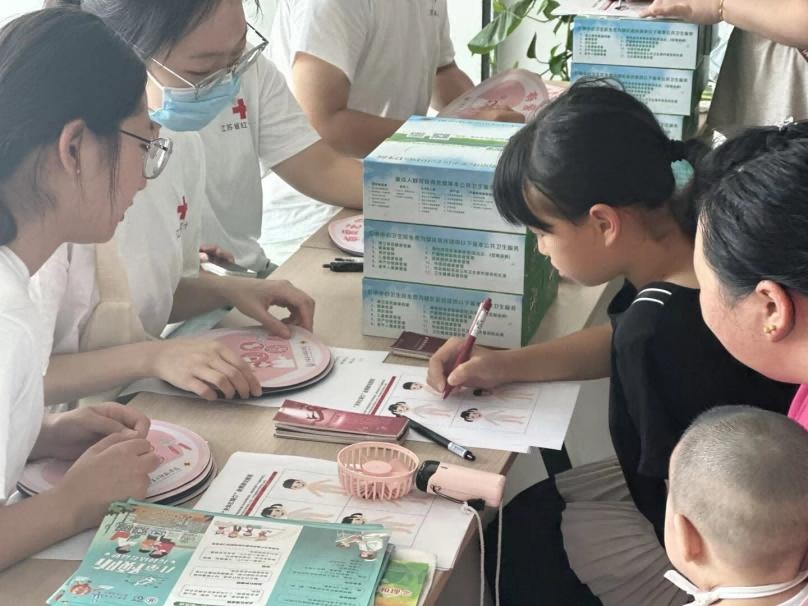 活動中,志愿者們深入衛(wèi)生所,通過發(fā)放宣傳資料、現(xiàn)場講解等方式,向居民科普防艾基本知識,詳細介紹艾滋病的傳播途徑與預(yù)防方法。針對不同群體,活動設(shè)計了分層互動:對孩子們,通過“圈出隱私部位”的趣味環(huán)節(jié)講解自我保護知識,用寓教于樂的方式加深理解;對老年居民,志愿者與醫(yī)生一同耐心科普隱私部位安全知識,幫助提升防護意識;面對親子家庭,則由家長協(xié)助孩子完成互動任務(wù),同步傳遞健康理念。