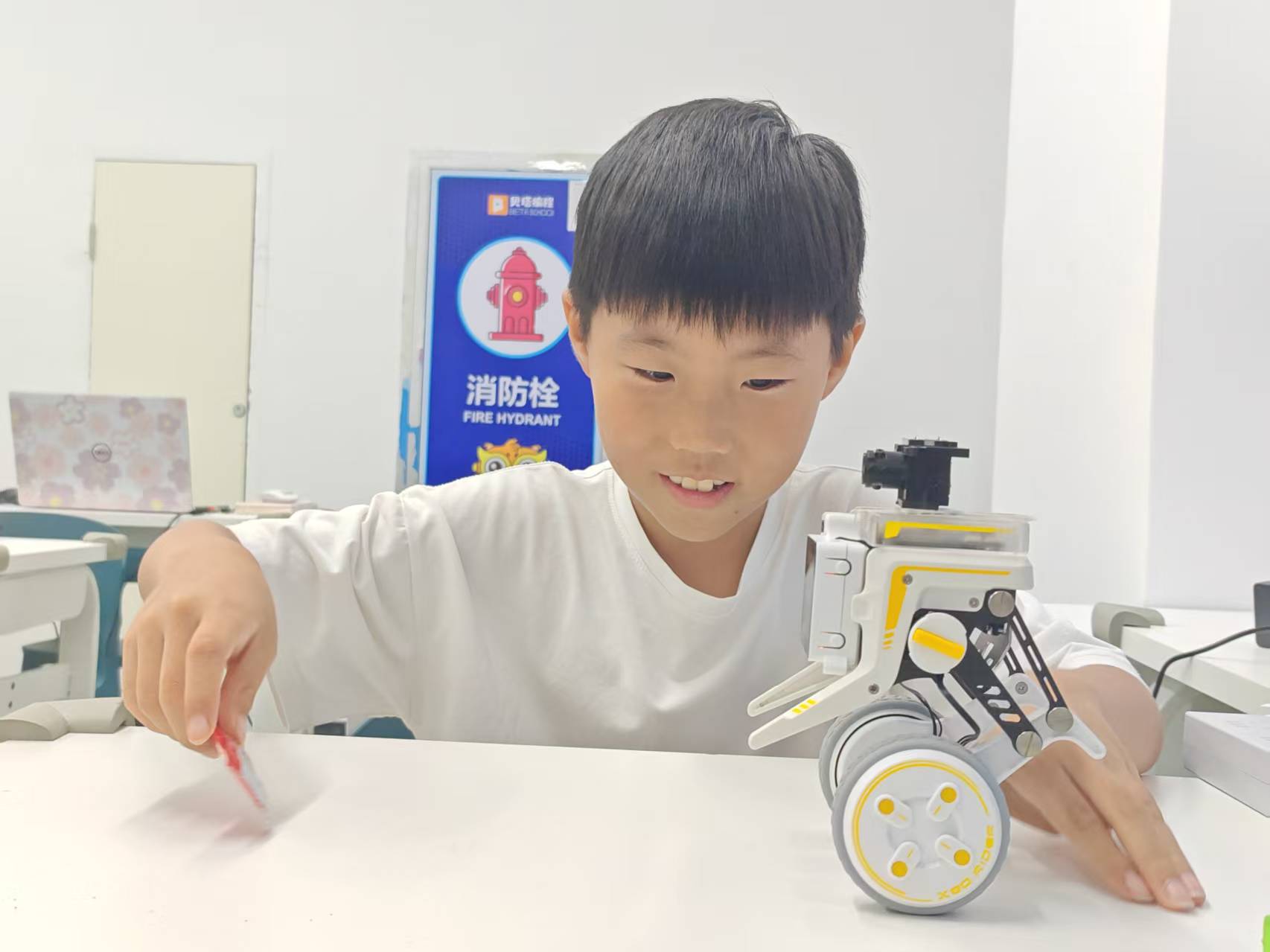 孩子的第一眼總會被機器人可愛的外形吸引,他們觸摸擺弄著這個可愛的伙伴,也與小機器人建立了初步的“友誼”。