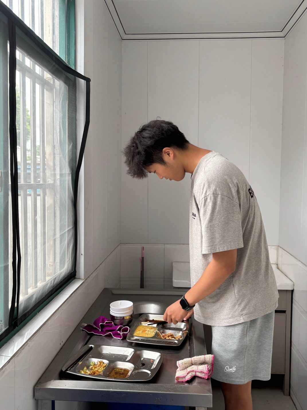 隨后,實踐團成員協(xié)助社區(qū)開展助餐服務,他們早早來到食堂,協(xié)助備餐、分裝餐盒,并細心核對送餐信息。隊員們將一份份溫熱餐食送至行動不便的老人家中,耐心詢問飲食偏好,陪伴他們聊天交流。這一行動不僅為老人傳遞了溫暖,更在真誠互動中弘揚了尊老敬老的文明風尚。