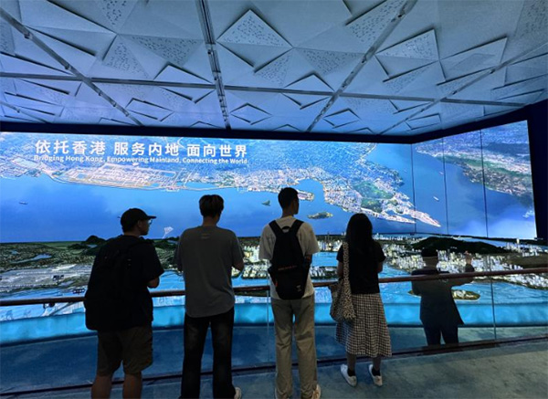 在前海深港現(xiàn)代服務(wù)業(yè)合作區(qū)展示廳,通過(guò)3D裸眼屏幕、城市沙盤,梳理黨的十八大以來(lái)前海從“一張白紙”到“創(chuàng)新高地”的變遷,深刻體會(huì)“依托香港,服務(wù)內(nèi)地,面向世界”的定位如何為青年搭建發(fā)展平臺(tái)。