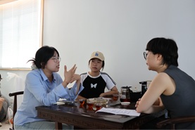 圖為蘆淞霓裳調(diào)研組成員與金冠城負(fù)責(zé)人康總座談。崔貞雅供圖