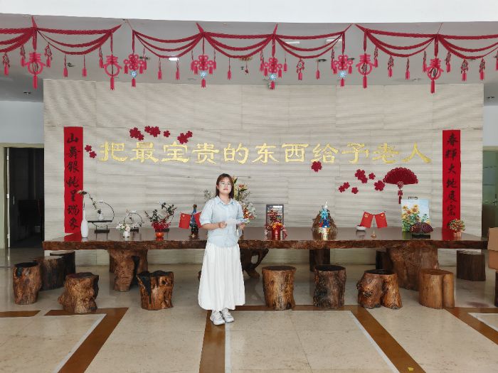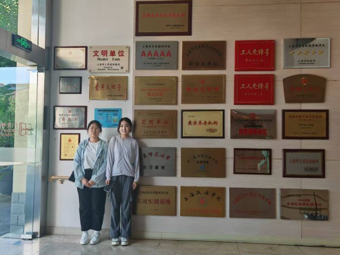圖為實(shí)踐隊(duì)員訪談后于上海中福會(huì)養(yǎng)老院大廳合影(李美茹攝)